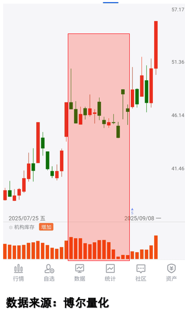 为啥会这样?因为业绩只是表象,咱们看不到背后的真实情况,就只能拿业绩当“挡箭牌”,给自己找个理由。但真正的关键,是机构大资金有没有积极参与交易。我平时用的量化大数据里,有个「机构库存」数据,专门反映机构资金的交易活跃程度——不是说机构买了卖了,只是看他们有没有积极参与交易,跟资金流入流出没关系,也不对应具体哪家机构。